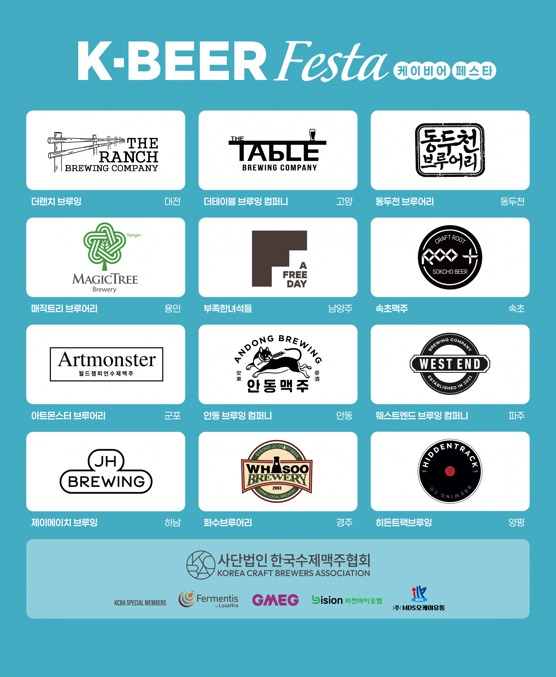 - 참가사: 더랜치브루잉, ㈜속초맥주, 동두천브루어리, ㈜더테이블브루잉컴퍼니, 주식회사 부족한녀석들, 히든트랙브루잉, 안동맥주, 웨스트엔드 브루잉 컴퍼니, 제이에이치 브루잉, 화수브루어리, 매직트리브루어리, 아트몬스터